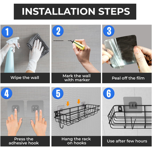 Self Adhesive Multipurpose Wall Mounted Bathroom Shelf with Hooks, Wall Mount Storage Organizer