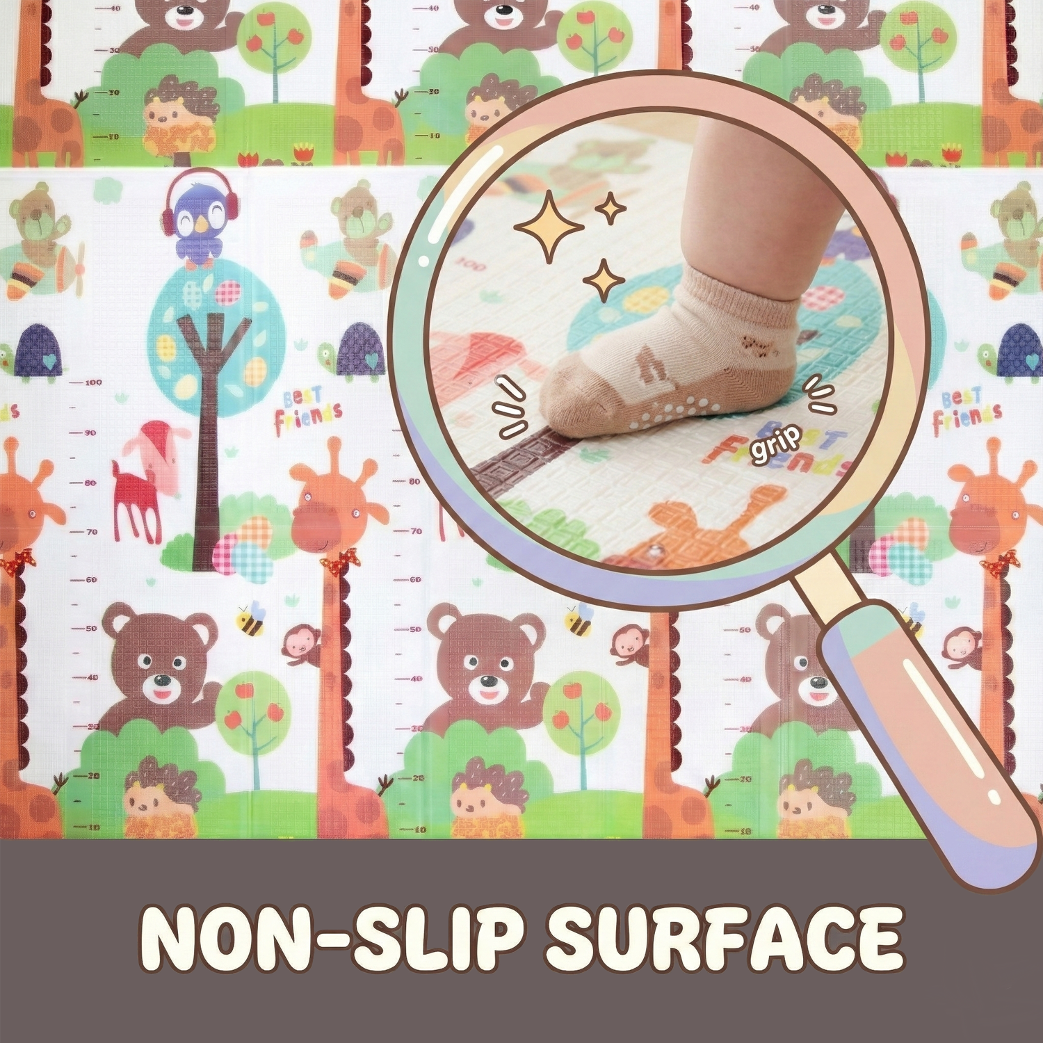 - Prevents slipping during crawling or walking